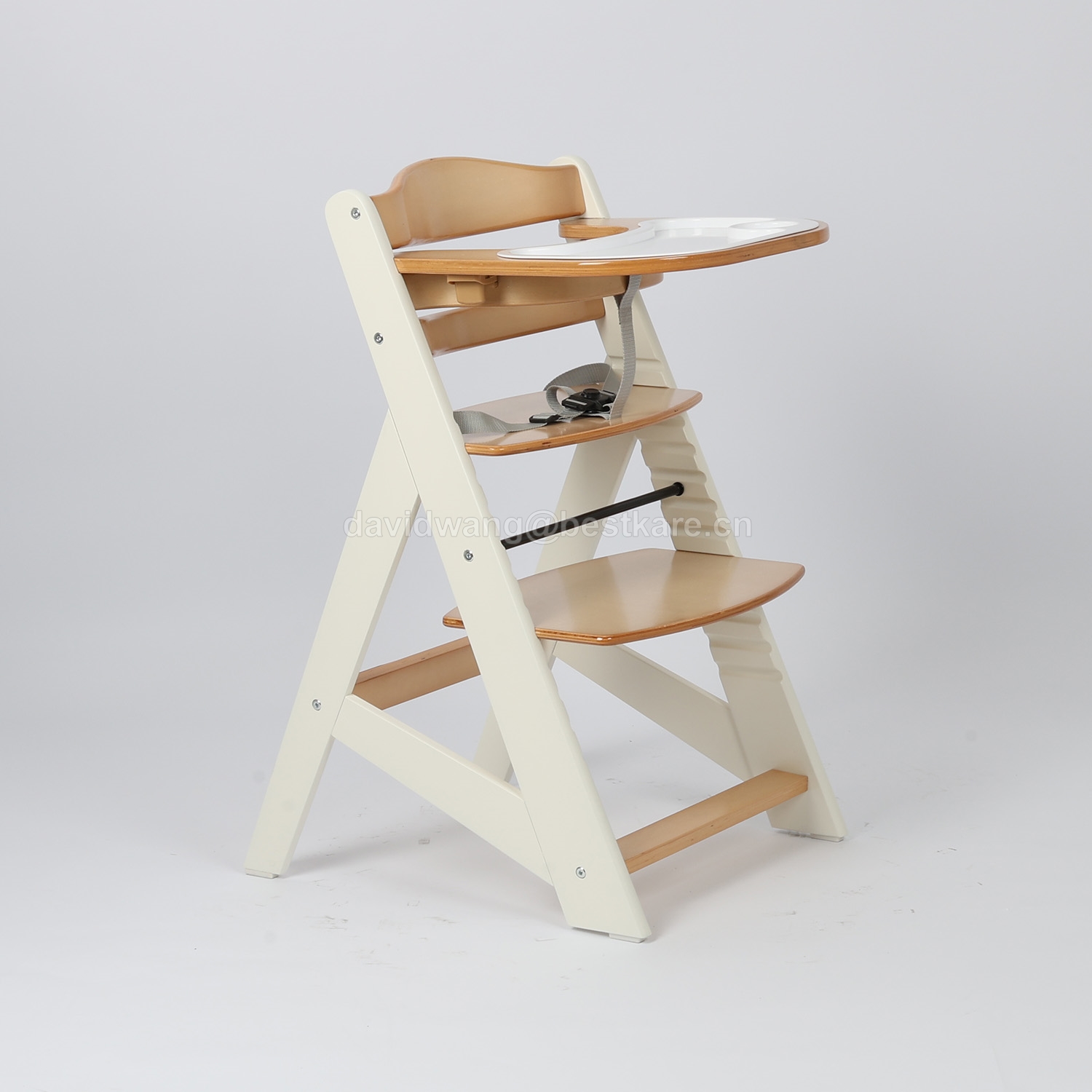 1. Removable wood tray - perfect for integrating the child at the table with the family