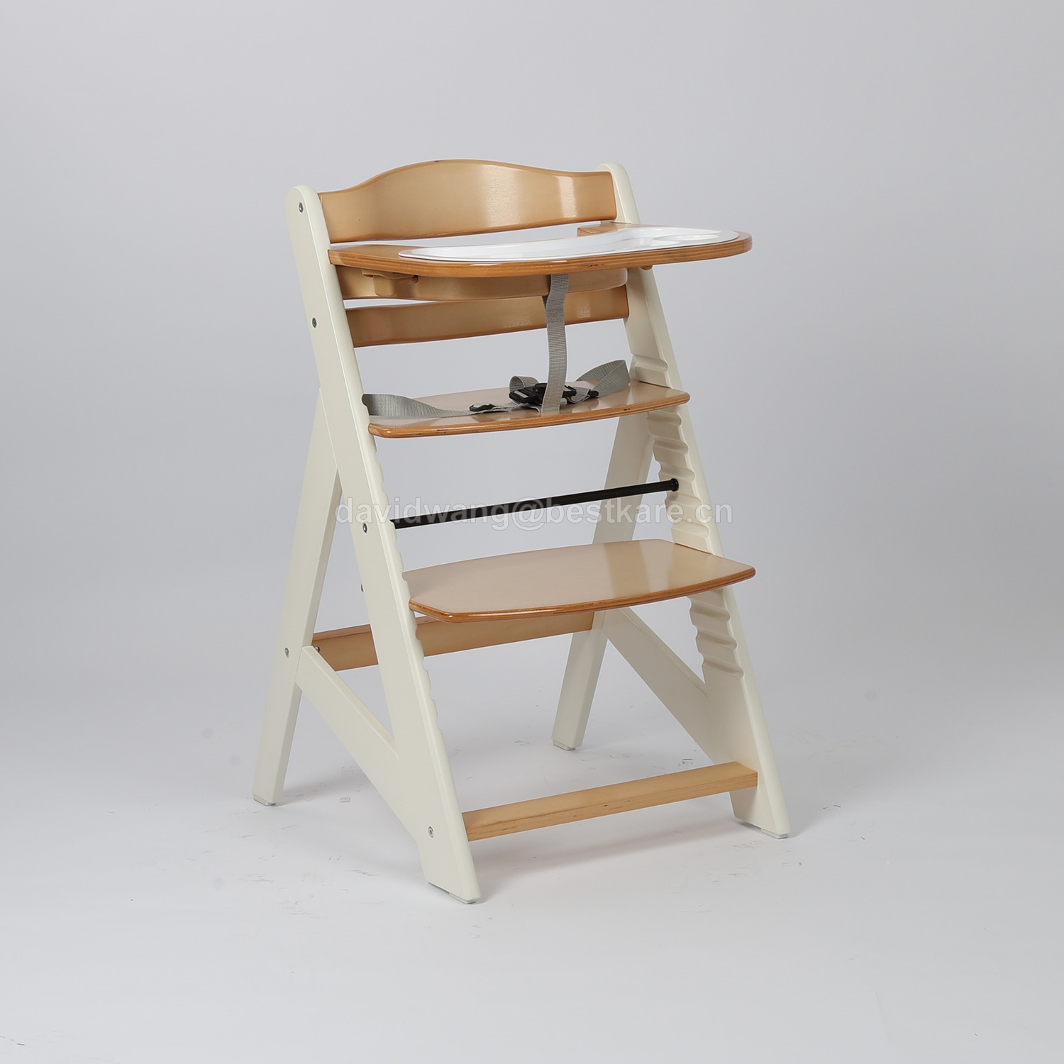 1. Removable wood tray - perfect for integrating the child at the table with the family